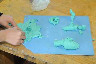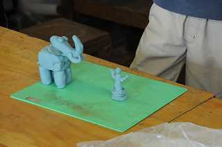 ぼう人形の作品が仕上がってので、粘土で動物などを作っています。