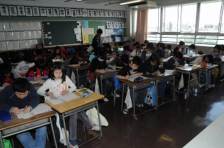 今日はまとめの問題を解くため、各学級でTTによる授業を進めています。