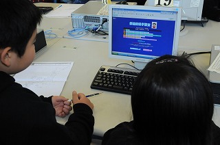 コンピュータを使って日本地図を調べています。