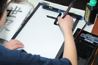 「世界」の練習をしています。