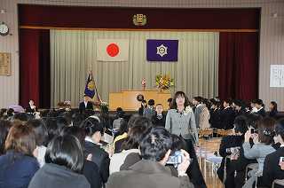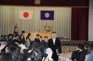卒業式の最後は退場です。5年生の演奏に合わせてクラスごとに退場しています。