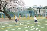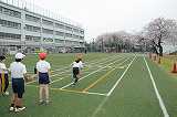 短距離走のタイムを計っています。
