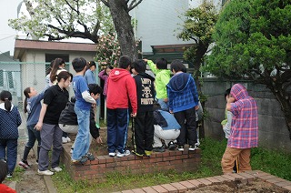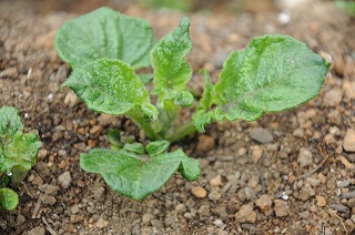 子どもたちが5年生の終わりに植えた、じゃがいもの観察をしています。