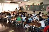 子どもたちが交代で視力検査にいくので、待っている間に折り紙を折っています。
