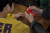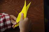 ある作品の部品を作っています。さて子どもたちが作っている折り紙を組み合わせると何ができあがるでしょうか。