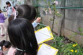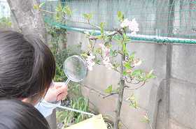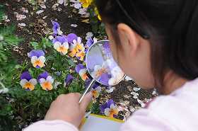 虫めがねを使って観察しています。
