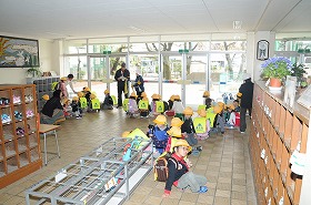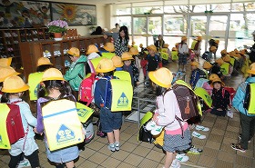 給食後、1年生が下校しました。