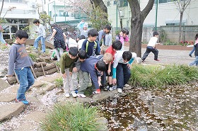 学校を回って、春を見つけています。