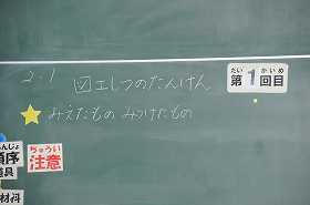 「図工室のたんけん」をテーマに、図工室で見つけたものを書いていきます。