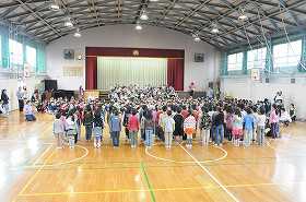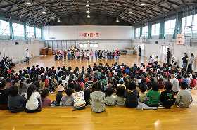 2年生が1年生に歓迎のことばと歌をプレゼントしています。