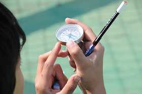 方位磁石で東西南北も確認しています。
