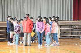 なの花タイムの音楽集会を司会などで運営した集会委員会の子どもたちが反省をしています。