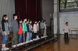 児童朝会で、健康トレーナーと家庭科を指導してくださるそれぞれの先生を紹介しました。その後で、クラス目標の発表をしました。