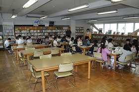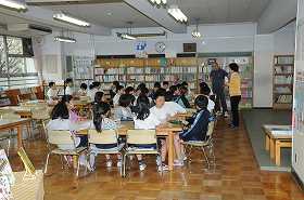 年度はじめなので、図書支援員の指導のもとで、図書室の使い方を確認しています。