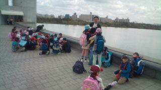 葛西臨海水族館にいます。グループの見学時間が終わり集合場所に集まっています。11:30