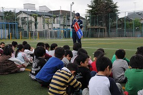 子どもたちが交通事故にあわないように、警察の方に来ていただき交通ルールを確認しています。