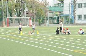 後半はトラックに沿って全力で走っています。