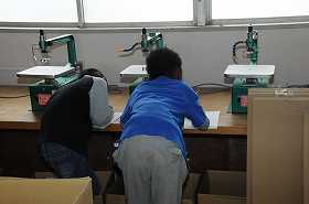 図工室を探検して見つけたことを、画用紙にまとめています。