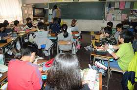 約2000年前の人々の生活を、挿絵を見ながら考えています。