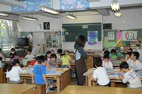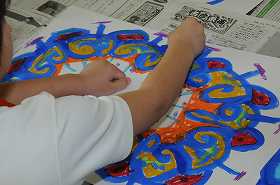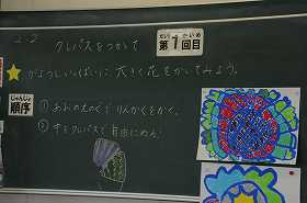 「クレパスを使って」をテーマに、画用紙いっぱいに大きな花を描いています。