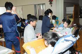 離任式で贈るプレゼントをみんなで作っています。