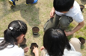 ホウセンカの種を植えています。