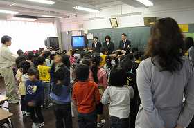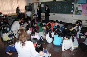 目黒警察から3人の方に来ていただき、子どもたちに自分の身を守る方法として「いかのおすし」の話をしていただいています。