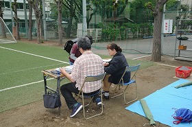 空模様がはっきりしませんが、ランドセル広場が行われています。