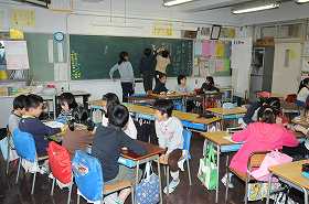 運動会のスローガンを話し合って決めています。