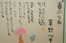「春のうた」を筆ペンを使って視写しました。