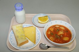 ミニチリメントースト・ミニフレンチトースト トマトシチュー 果物 牛乳