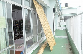 暑い夏に備え、わかたけ学級のベランダに「よしず」が登場しました。