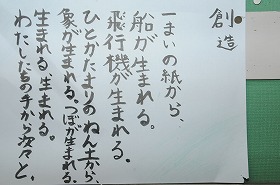 「創造」という詩を筆ペンを使って視写しています。