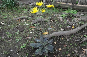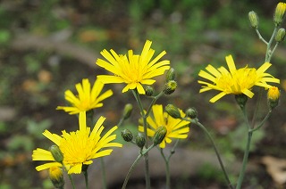 葉の模様に特徴がある「うずらたんぽぽ」が花を咲かせています。