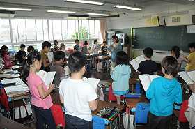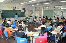 国語辞典の使い方をみんなで音読した後で、実際に使い方を確認しています。