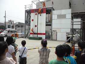 最後に、消防士さんの災害や事件、事故に備えた訓練の様子を見せて頂きました。