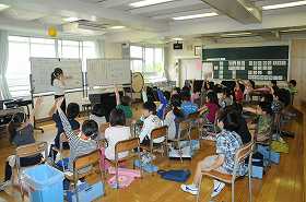 「海風をきって」を階名で歌っています。このあと、鍵盤ハーモニカで練習します。