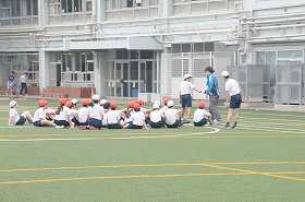 リレーの練習です。バトンの受け渡しが上手になってきました。