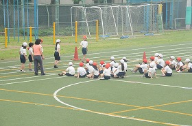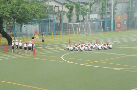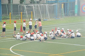 リレーのバトンパスの練習をしています。