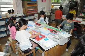 昨日の消防写生会の作品を、絵の具を使って仕上げています。