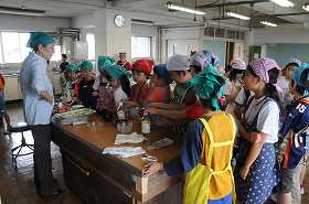 「ゆで野菜サラダ」を作る実習です。野菜がゆであがり、ドレッシングを作っています。