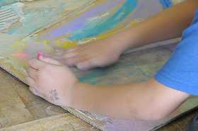 「キモチをえがく」をテーマに、大きなキャンバスに自分の思いを表現しています。
