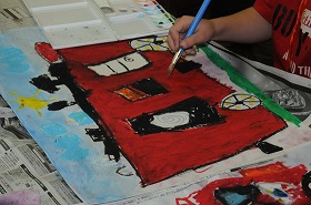 「はたらく消防写生会」の作品を仕上げています。