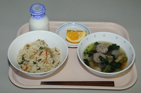 深川めし とびうおのつみれ汁 果物(甘夏)