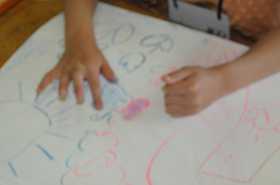 「はるのようせい」をテーマに、春の風景に色を付けて、ようせいを飛ばします。