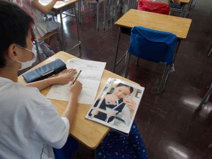 分度器を使い、決められた角度を実際に書いています。