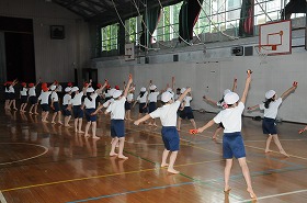 運動会の表現の部分練習をしています。