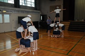 組体操の練習をしています。