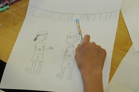 運動会の旗を作っています。