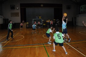 バスケットボールのゲームをしています。